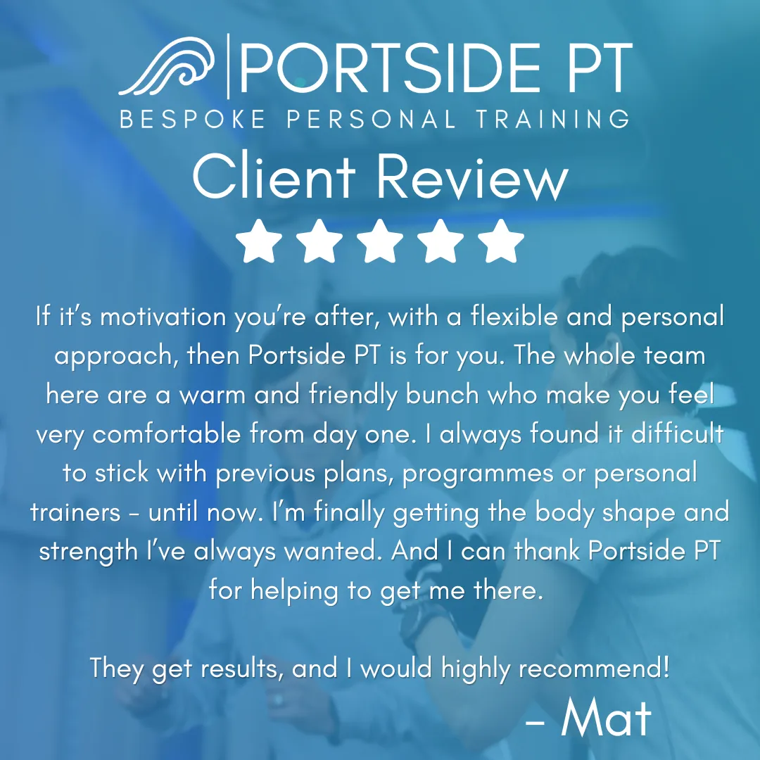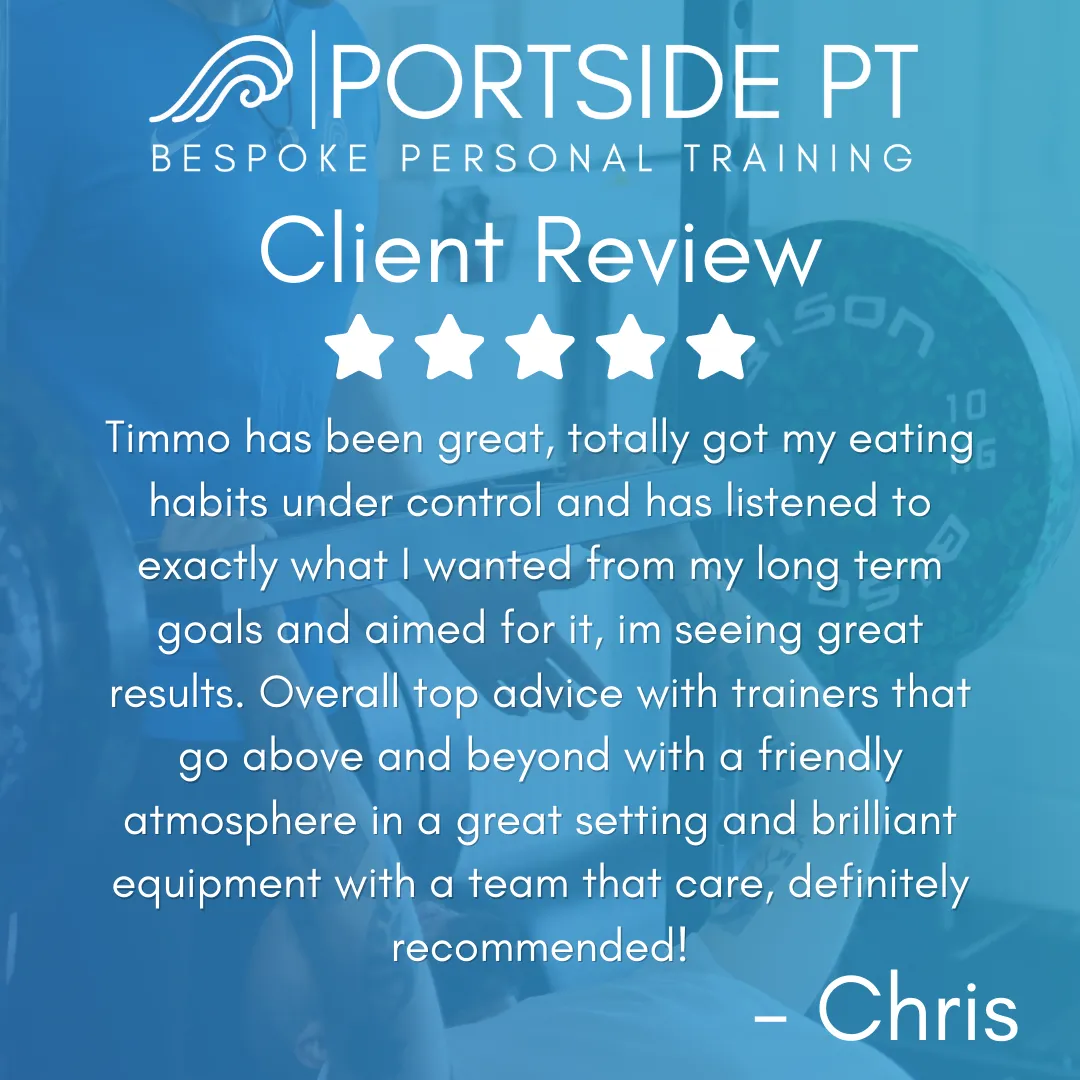 As soon as you register for your free session and health assessment (by filling the form on this page) we will also send you a copy of the Portside Recipe Pack & Nutrition Guide. You can keep and use this for free, even if you decide not to join us as a client later.